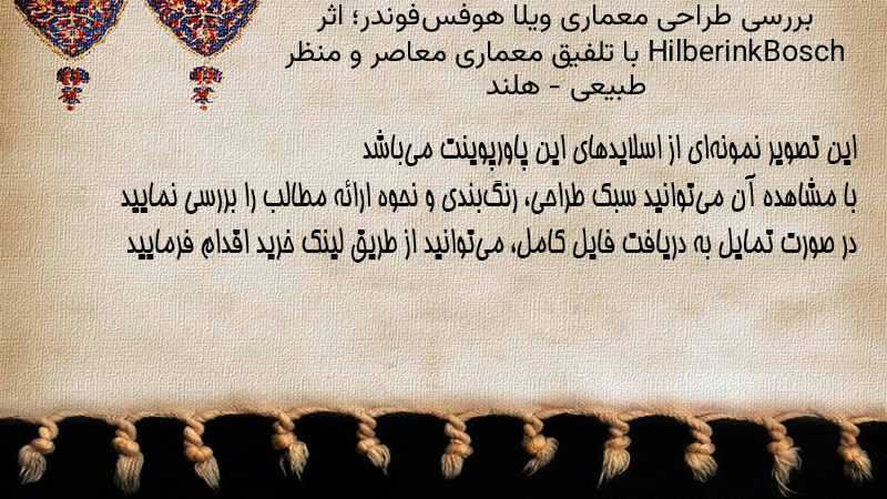 پاورپوینت کامل بررسی طراحی معماری ویلا هوفسفوندر؛ اثر HilberinkBosch با تلفیق معماری معاصر و منظر طبیعی – هلند