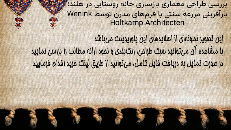 پاورپوینت کامل بررسی طراحی معماری بازسازی خانه روستایی در هلند؛ بازآفرینی مزرعه سنتی با فرمهای مدرن توسط Wenink Holtkamp Architecten