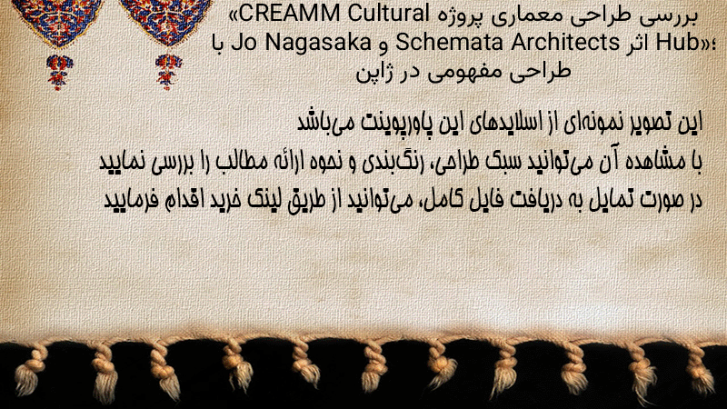 پاورپوینت کامل بررسی طراحی معماری پروژه «CREAMM Cultural Hub»؛ اثر Schemata Architects و Jo Nagasaka با طراحی مفهومی در ژاپن