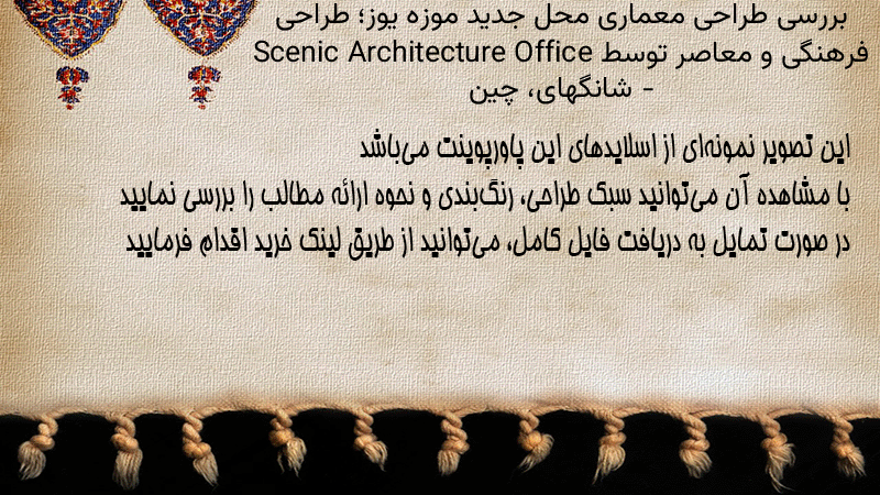 پاورپوینت کامل بررسی طراحی معماری محل جدید موزه یوز؛ طراحی فرهنگی و معاصر توسط Scenic Architecture Office – شانگهای، چین