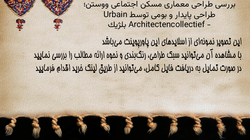 پاورپوینت کامل بررسی طراحی معماری مسکن اجتماعی ووستن؛ طراحی پایدار و بومی توسط Urbain Architectencollectief – بلژیک