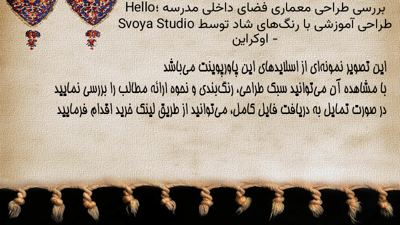 پاورپوینت کامل بررسی طراحی معماری فضای داخلی مدرسه Hello؛ طراحی آموزشی با رنگهای شاد توسط Svoya Studio – اوکراین