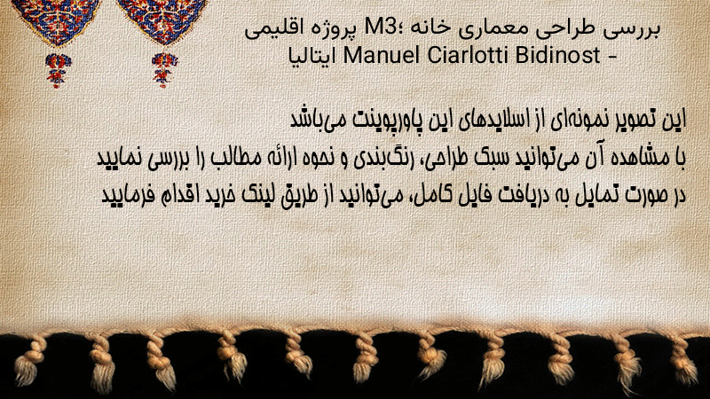 پاورپوینت کامل بررسی طراحی معماری خانه M3؛ پروژه اقلیمی Manuel Ciarlotti Bidinost – ایتالیا