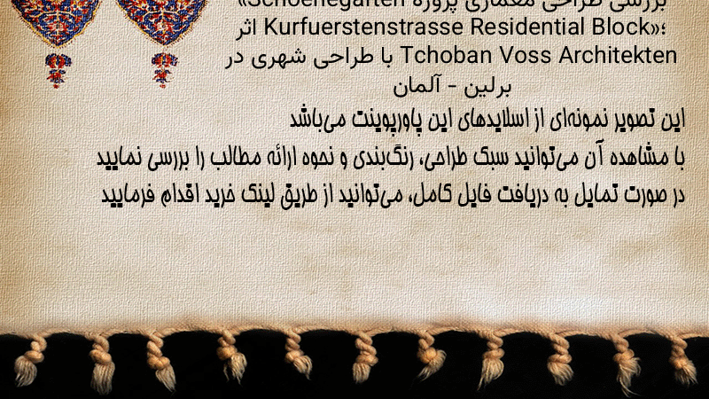 پاورپوینت کامل بررسی طراحی معماری پروژه «Schoenegarten Kurfuerstenstrasse Residential Block»؛ اثر Tchoban Voss Architekten با طراحی شهری در برلین – آلمان