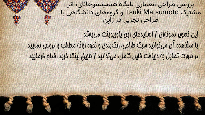 پاورپوینت کامل بررسی طراحی معماری پایگاه هیمیتسوجانای؛ اثر مشترک Itsuki Matsumoto و گروههای دانشگاهی با طراحی تجربی در ژاپن