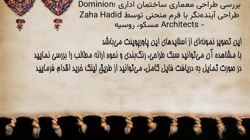 پاورپوینت کامل بررسی طراحی معماری ساختمان اداری Dominion؛ طراحی آیندهنگر با فرم منحنی توسط Zaha Hadid Architects – مسکو، روسیه