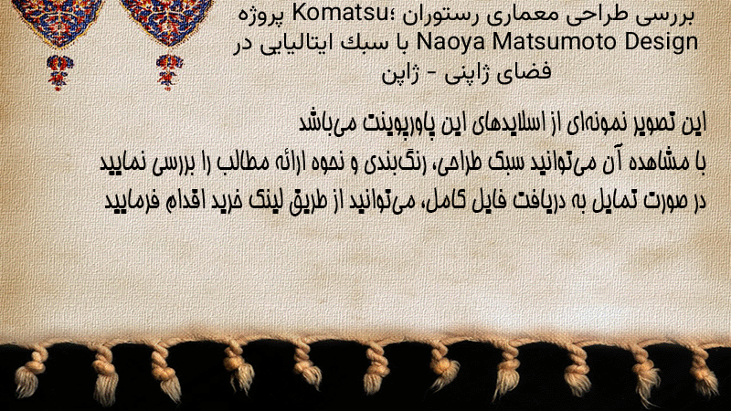 پاورپوینت کامل بررسی طراحی معماری رستوران Komatsu؛ پروژه Naoya Matsumoto Design با سبک ایتالیایی در فضای ژاپنی – ژاپن