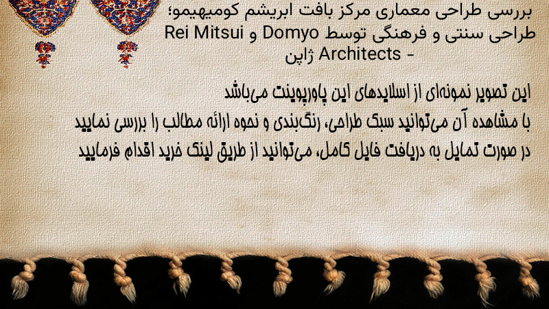 پاورپوینت کامل بررسی طراحی معماری مرکز بافت ابریشم کومیهیمو؛ طراحی سنتی و فرهنگی توسط Domyo و Rei Mitsui Architects – ژاپن