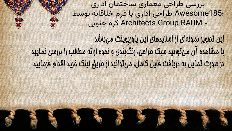 پاورپوینت کامل بررسی طراحی معماری ساختمان اداری Awesome185؛ طراحی اداری با فرم خلاقانه توسط Architects Group RAUM – کره جنوبی