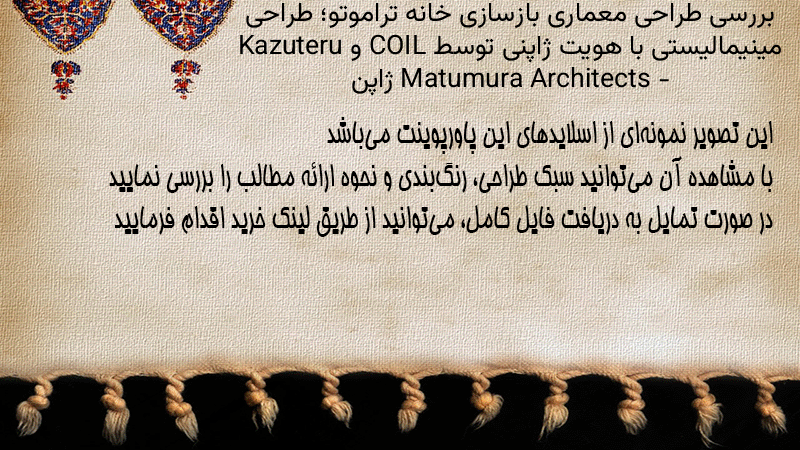 پاورپوینت کامل بررسی طراحی معماری بازسازی خانه تراموتو؛ طراحی مینیمالیستی با هویت ژاپنی توسط COIL و Kazuteru Matumura Architects – ژاپن