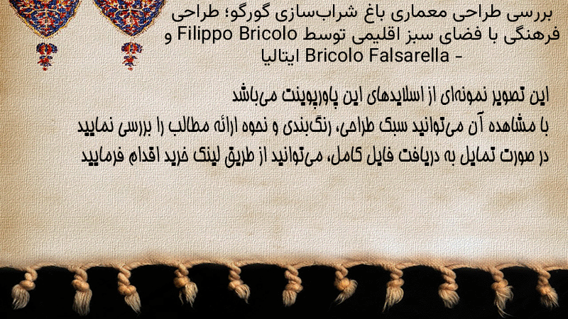 پاورپوینت کامل بررسی طراحی معماری باغ شرابسازی گورگو؛ طراحی فرهنگی با فضای سبز اقلیمی توسط Filippo Bricolo و Bricolo Falsarella – ایتالیا
