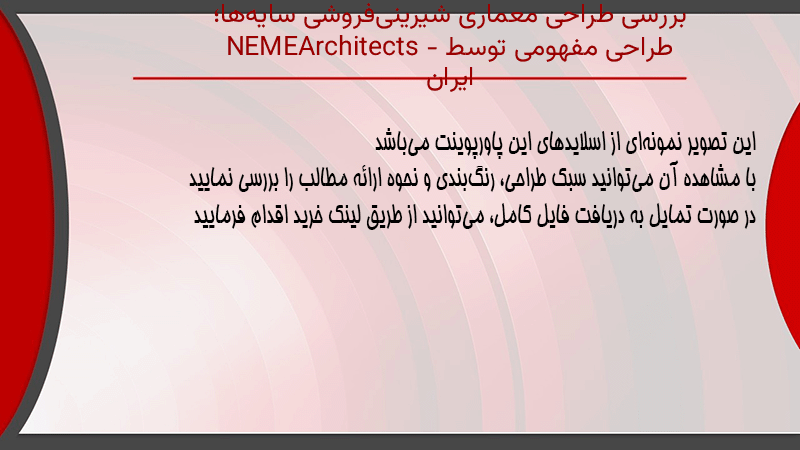 پاورپوینت کامل بررسی طراحی معماری شیرینیفروشی سایهها؛ طراحی مفهومی توسط NEMEArchitects – ایران