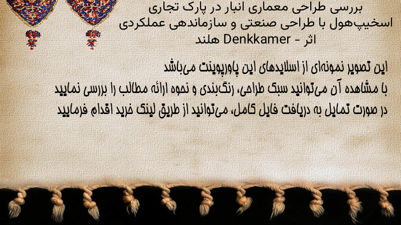 پاورپوینت کامل بررسی طراحی معماری انبار در پارک تجاری اسخیپهول با طراحی صنعتی و سازماندهی عملکردی اثر Denkkamer – هلند