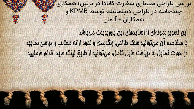 پاورپوینت کامل بررسی طراحی معماری سفارت کانادا در برلین؛ همکاری چندجانبه در طراحی دیپلماتیک توسط KPMB و همکاران – آلمان