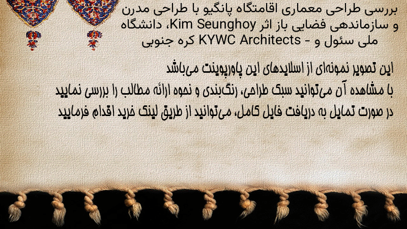 پاورپوینت کامل بررسی طراحی معماری اقامتگاه پانگیو با طراحی مدرن و سازماندهی فضایی باز اثر Kim Seunghoy، دانشگاه ملی سئول و KYWC Architects – کره جنوبی