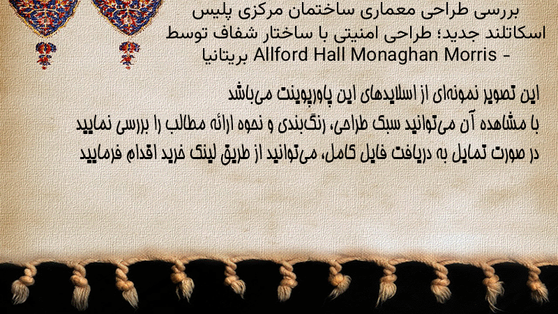 پاورپوینت کامل بررسی طراحی معماری ساختمان مرکزی پلیس اسکاتلند جدید؛ طراحی امنیتی با ساختار شفاف توسط Allford Hall Monaghan Morris – بریتانیا