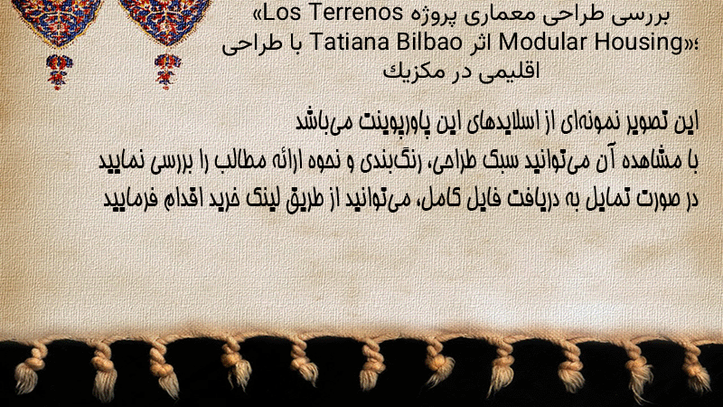 پاورپوینت کامل بررسی طراحی معماری پروژه «Los Terrenos Modular Housing»؛ اثر Tatiana Bilbao با طراحی اقلیمی در مکزیک