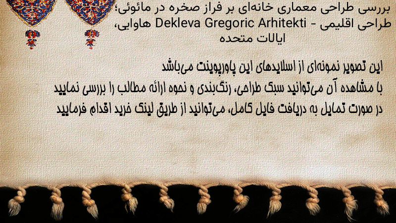 پاورپوینت کامل بررسی طراحی معماری خانهای بر فراز صخره در مائوئی؛ طراحی اقلیمی Dekleva Gregoric Arhitekti – هاوایی، ایالات متحده