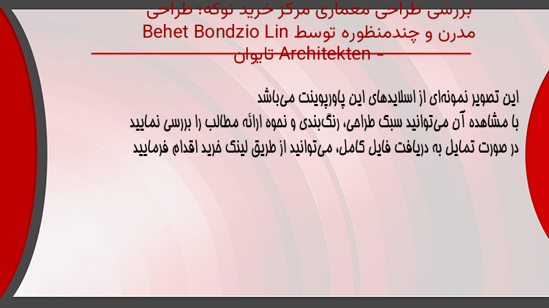 پاورپوینت کامل بررسی طراحی معماری مرکز خرید نوکه؛ طراحی مدرن و چندمنظوره توسط Behet Bondzio Lin Architekten – تایوان