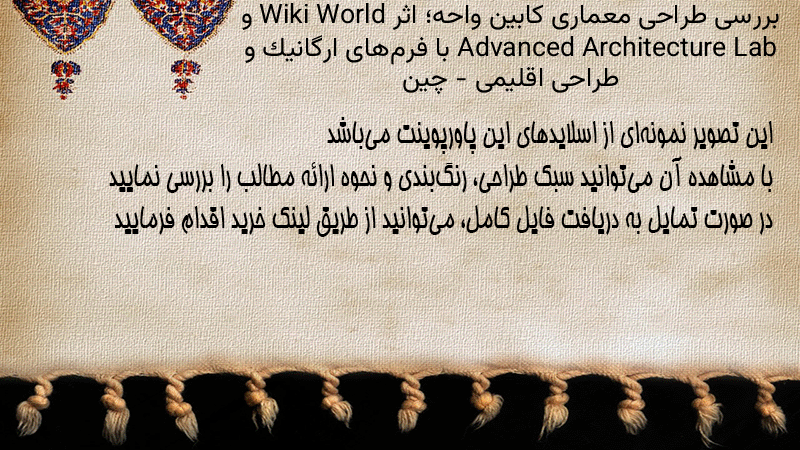 پاورپوینت کامل بررسی طراحی معماری کابین واحه؛ اثر Wiki World و Advanced Architecture Lab با فرمهای ارگانیک و طراحی اقلیمی – چین