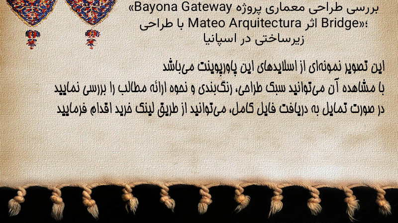 پاورپوینت کامل بررسی طراحی معماری پروژه «Bayona Gateway Bridge»؛ اثر Mateo Arquitectura با طراحی زیرساختی در اسپانیا