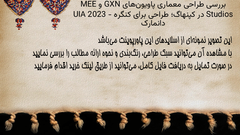 پاورپوینت کامل بررسی طراحی معماری پاویونهای GXN و MEE Studios در کپنهاگ؛ طراحی برای کنگره UIA 2023 – دانمارک