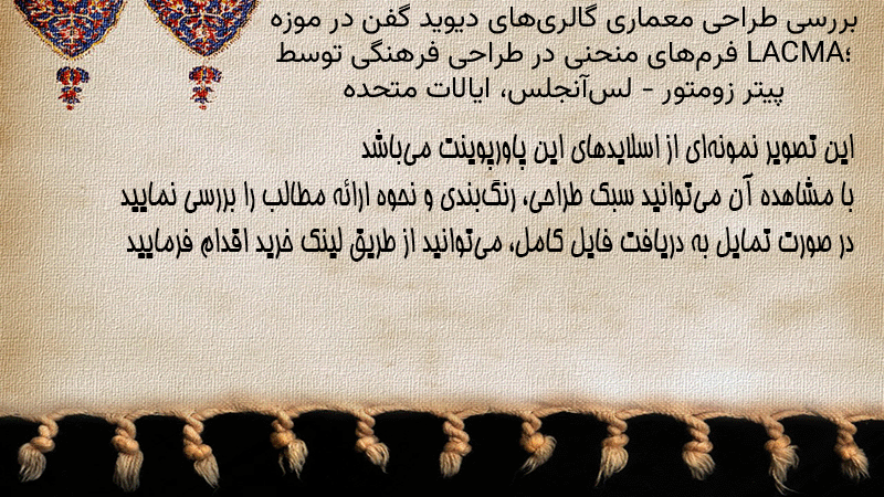 پاورپوینت کامل بررسی طراحی معماری گالریهای دیوید گفن در موزه LACMA؛ فرمهای منحنی در طراحی فرهنگی توسط پیتر زومتور – لسآنجلس، ایالات متحده