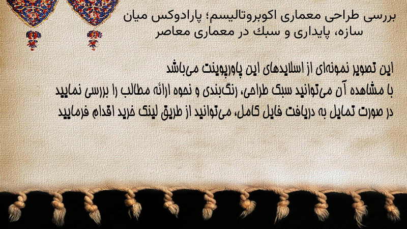 پاورپوینت کامل بررسی طراحی معماری اکوبروتالیسم؛ پارادوکس میان سازه، پایداری و سبک در معماری معاصر