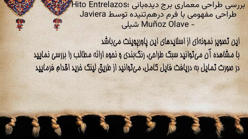 پاورپوینت کامل بررسی طراحی معماری برج دیدهبانی Hito Entrelazos؛ طراحی مفهومی با فرم درهمتنیده توسط Javiera Muñoz Olave – شیلی