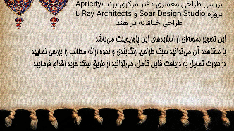 پاورپوینت کامل بررسی طراحی معماری دفتر مرکزی برند Apricity؛ پروژه Soar Design Studio و Ray Architects با طراحی خلاقانه در هند