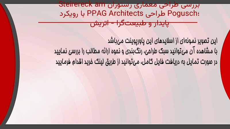 پاورپوینت کامل بررسی طراحی معماری رستوران Steirereck am Pogusch؛ طراحی PPAG Architects با رویکرد پایدار و طبیعتگرا – اتریش