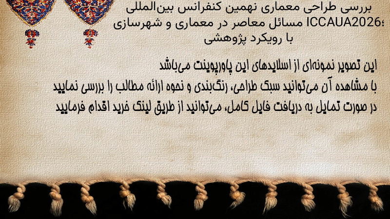 پاورپوینت کامل بررسی طراحی معماری نهمین کنفرانس بینالمللی ICCAUA2026؛ مسائل معاصر در معماری و شهرسازی با رویکرد پژوهشی