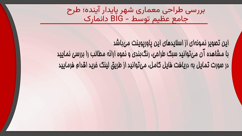 پاورپوینت کامل بررسی طراحی معماری شهر پایدار آینده؛ طرح جامع عظیم توسط BIG – دانمارک