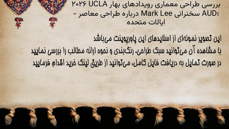 پاورپوینت کامل بررسی طراحی معماری رویدادهای بهار ۲۰۲۶ UCLA AUD؛ سخنرانی Mark Lee درباره طراحی معاصر – ایالات متحده